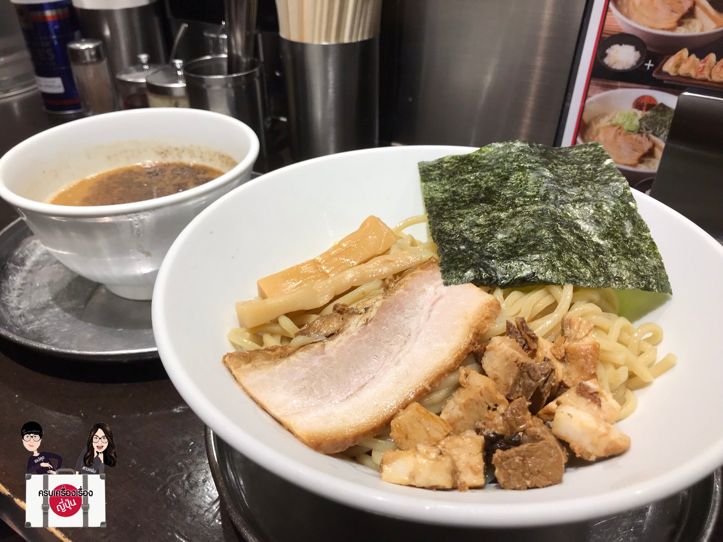 ร้านนี้มีชื่อเสียงในเรื่อง ทสึเกะเมน มาก ๆ ค่ะ ร้านของนางตั้งอยู่ที่ ramen street ตั้งอยู่ในสถานี Tokyo ichibankai ที่ไปทีไรต้องมีแถวต่อคิวยาวเฟื้อย จุดเด่นของร้านนี้อยู่ที่ เราสามารถเลือกพริกมาเติมได้ ซึ่งมี 2 แบบ คือแบบที่เป็นน้ำมันน้ำพริกเผาอย่างเดียว และแบบที่เป็นเนื้อน้ำพริกแห้ง ๆ ที่มีส่วนผสมของกุ้งแห้งมาด้วย สำหรับคนที่ชอบความเผ็ด เลือกแบบนี้ก็อร่อยค่ะ แต่ถ้าใครไม่ชอบกินเผ็ดก็เลือกแบบธรรมดารสชาติก็ฟินลืม