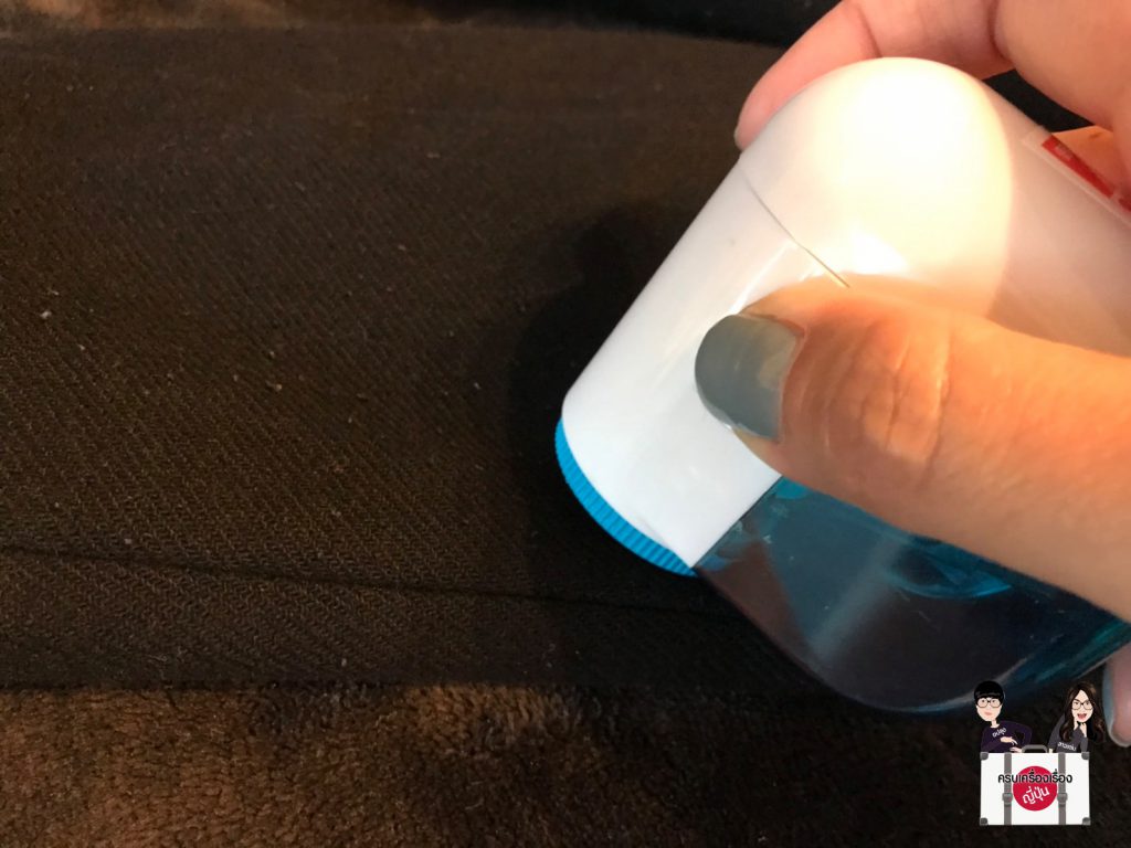 เปิดสวิตซ์แล้ว จะได้ยินเสียงมอเตอร์ทำงาน เราก็นำเครื่องไปถูเสื้อผ้าบริเวณที่เป็นขุย ถูไปมา 3 -4 ครั้ง ถูเบา ๆ นะคะ แล้วอย่าเปิดเครื่องนาน