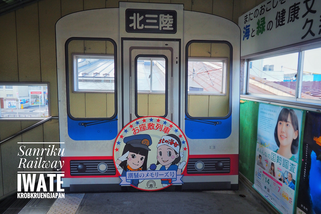 รถไฟที่ขึ้นเป็นรุ่น 36-718 เป็นรถไฟดีเซลโดยรถไฟ Sanriku Railway มีรถไฟหลายรุ่นนะคะ ต่างกันแค่รูปแบบการวางที่นั่งภายในรถเท่านั้น ส่วนภายนอกจะมีหน้าตาคล้ายกัน โดยรถไฟนี้จะมีการทาสีหลัก ๆ 3 สีเป็นสัญลักษณ์ของบริษัทโดยแต่ละสีก็มีความหมายด้วยค่ะ สีน้ำเงิน หมายถึงทะเล Sanriku, สีแดงหมายถึง ความหลงไหลในรถไฟ และสีขาว หมายถึง ความซื่อสัตย์